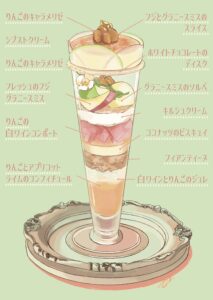 It’s a calm afternoon in a café in Hachioji. Gentle rays of sunlight stream through the window, illuminating the apple parfait resting on the table. The contrast of red and green apples seems to capture the very essence of autumn light, and simply gazing at it makes time feel slower, softer.