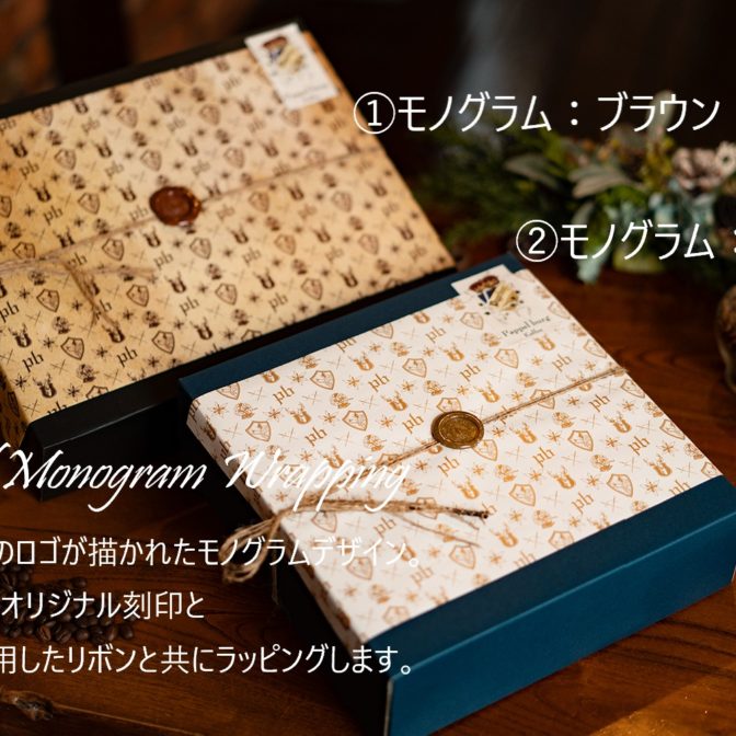 パペルブルグオリジナルのラッピングペーパーでお包みします。